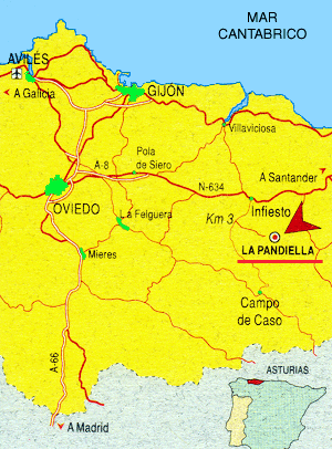 la izquierda a La Pandiella, la carretera se acaba en el pueblo, donde encontrarás